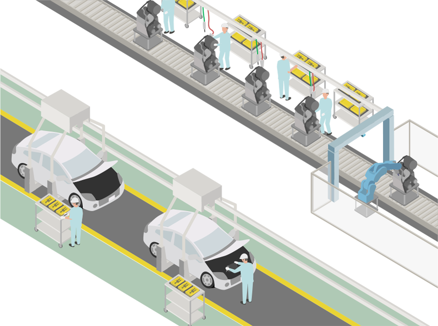 1台の自動車は数万点の部品から組み立てられています。